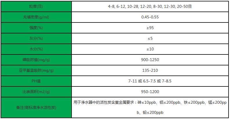 果殼凈水活性炭技術(shù)指標(biāo)
